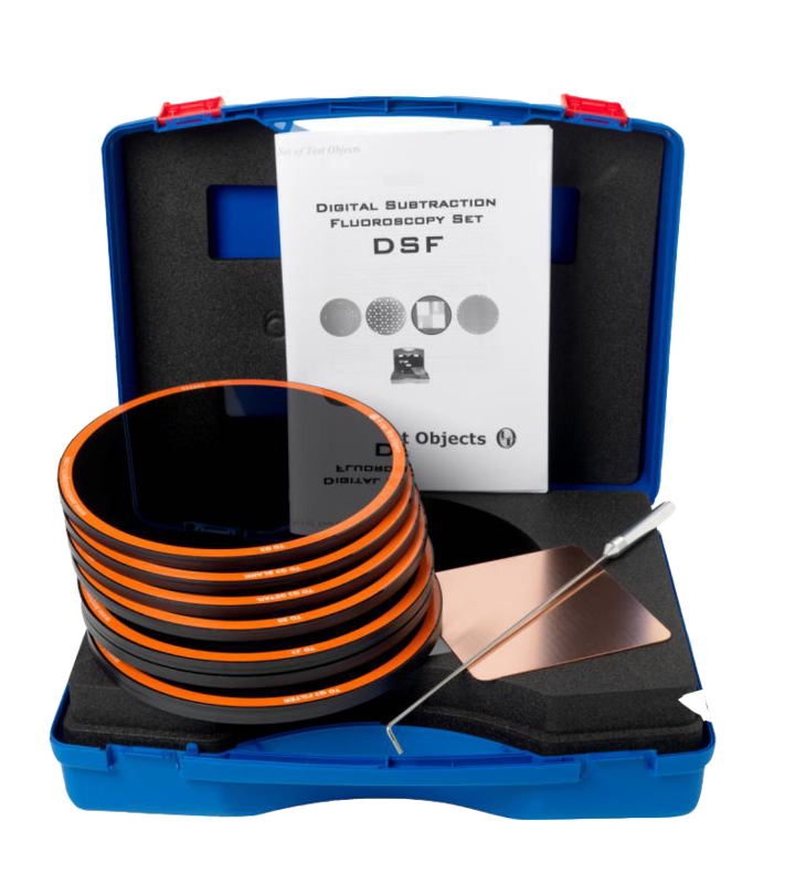 DSA综合性能测试模体,包括对数线性算法及模数转化测试板TO J3、图像动态范围模体TO Q3、低对比阈值探测能力模体TO 20 和细节对比度模体 TO D3。